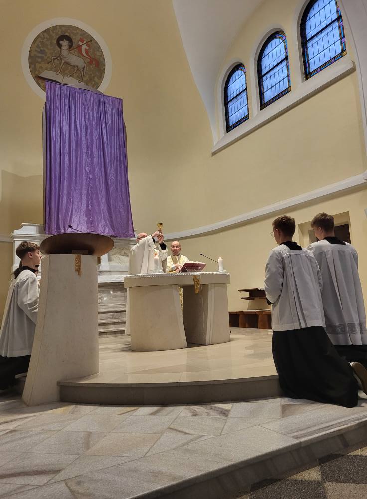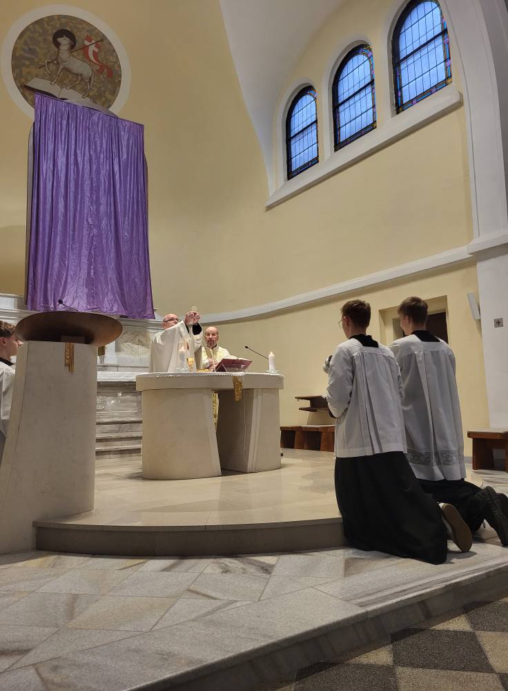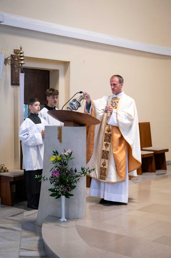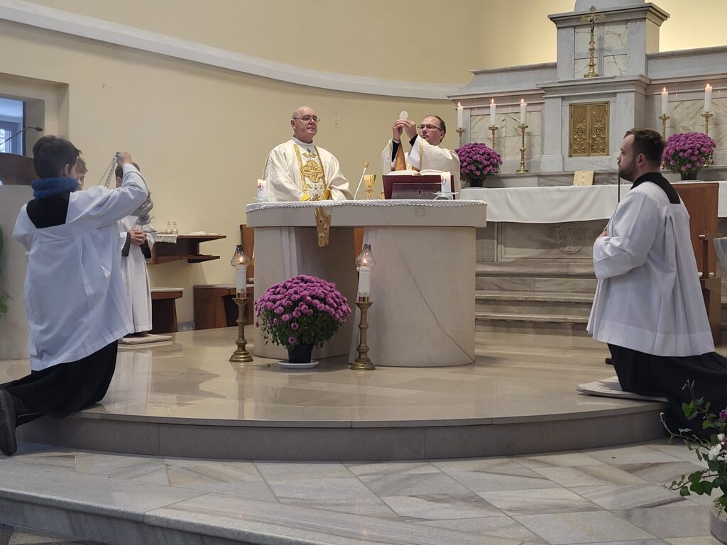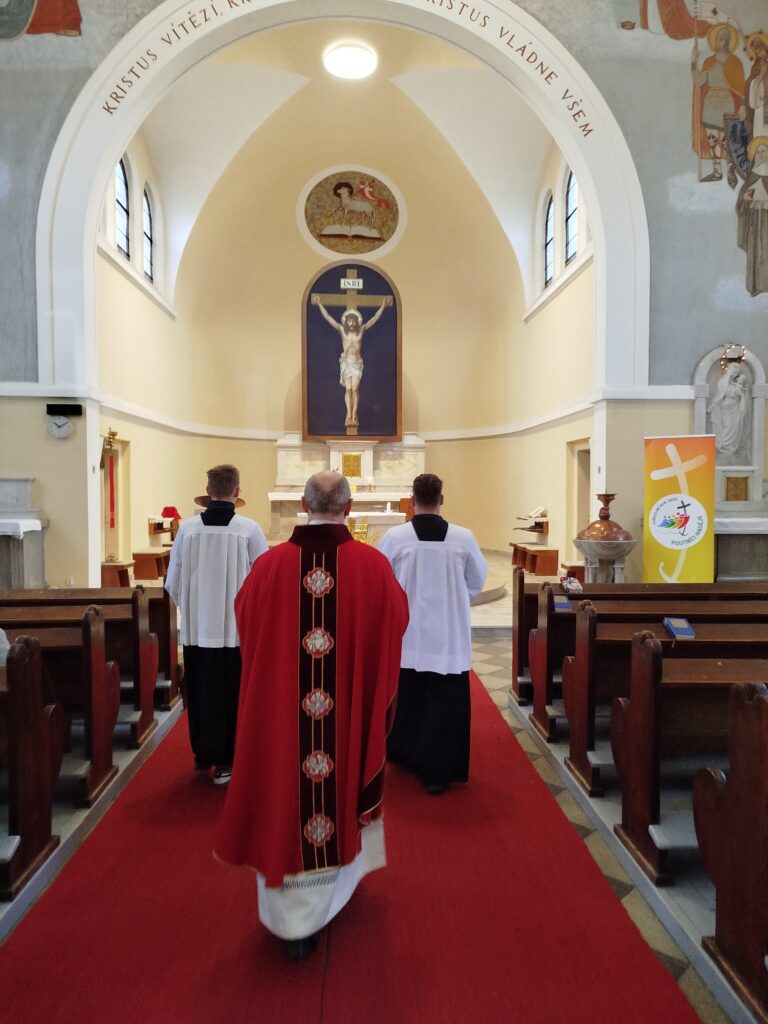 Hlavním celebrantem a slavnostním kazatelem byl P. Jan Jurečka. V závěru mše sv. jsme popřáli o. Janu Larischovi k jeho nedávným narozeninám.