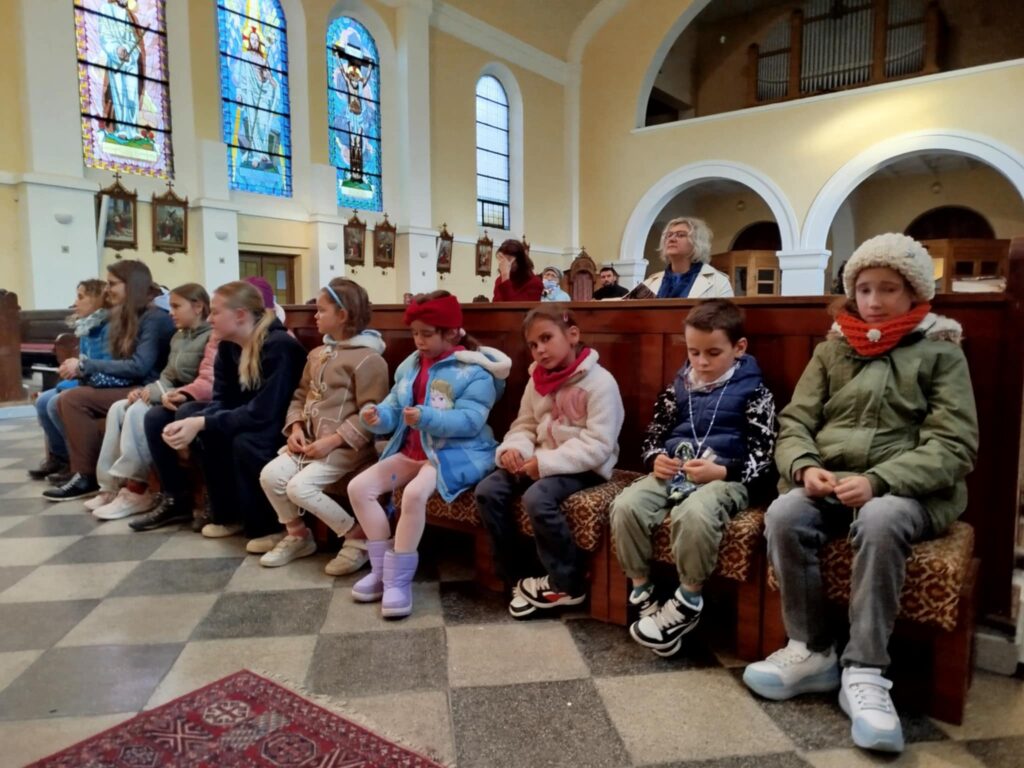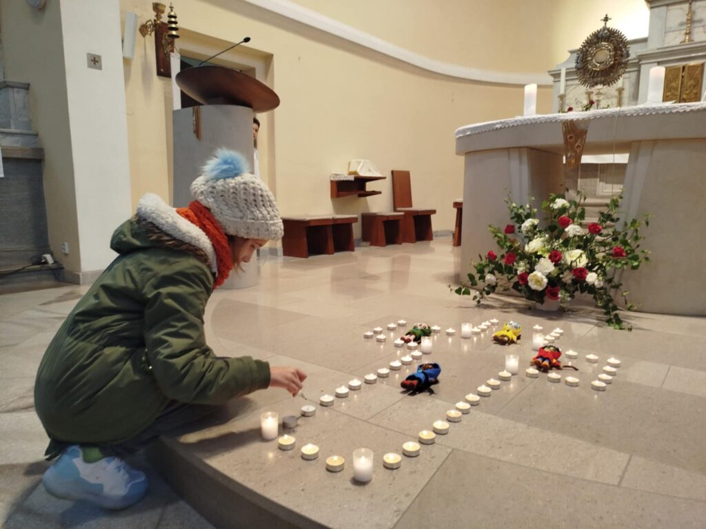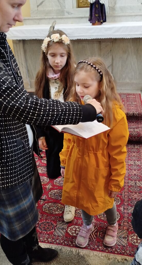 Před obřady jsme se modlili s dětmi křížovou cestu s maskotem Jubilejního roku Luce a jejími kamarády.