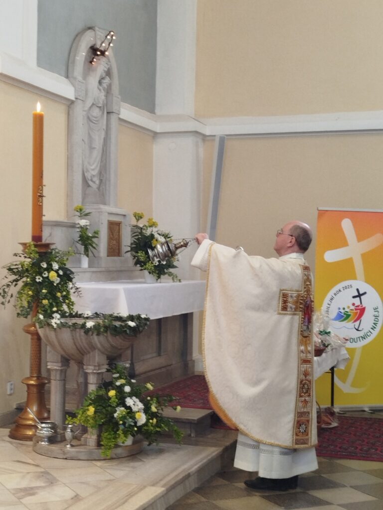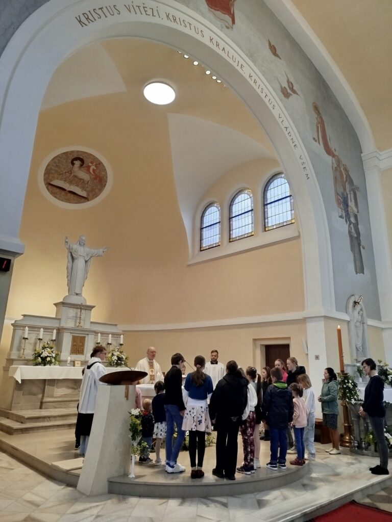 Slavnostním kazatelem byl třebovický farář P. Karel Rechtenberg. V závěru mše sv. proběhlo vyhodnocení jubilejní cesty, kterou jsme s dětmi prožívali celou postní a velikonoční dobu. A poté agapé před kostelem…